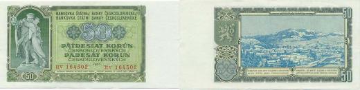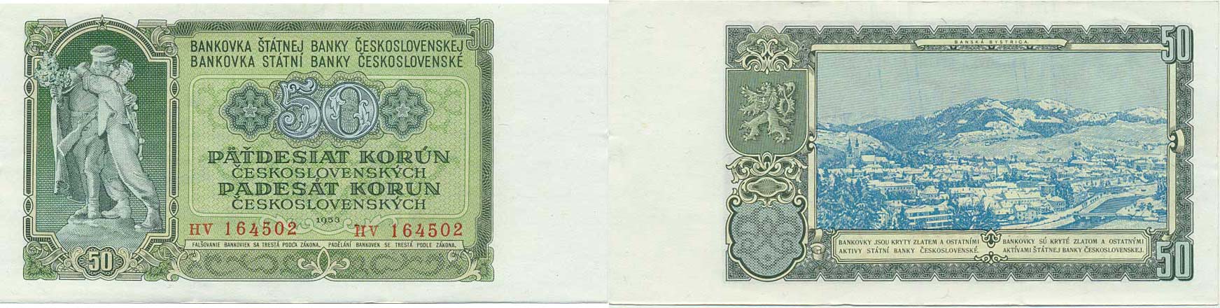 50 Kčs 1953 sér. HK neperf. Baj. 91b; Hejz. 94 b1_tém.