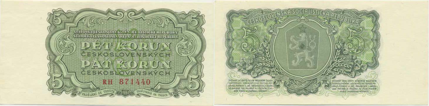 5 Kčs 1961 sér. RH - 3 mm číslovač Baj. 96; Hej. 99 a2