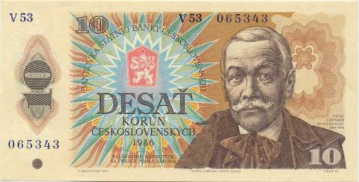 10 Kčs 1986 sér. V 53 Baj. 103; Hej. 107