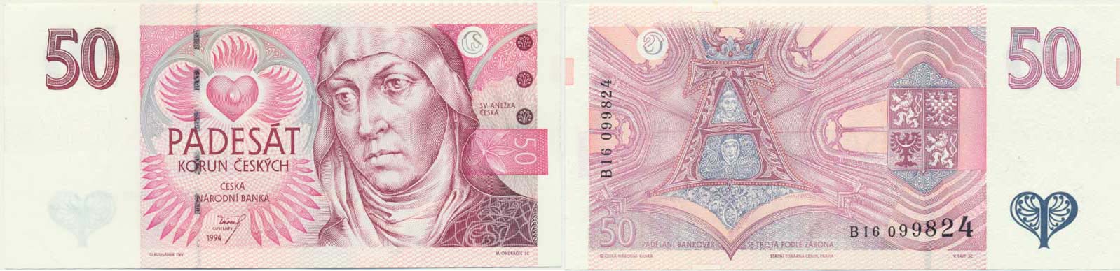 50 Kč 1994 sér. B16 Hej. CZ 15a; Baj. CZ 11