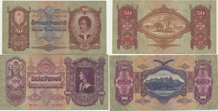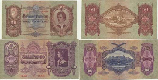 100 Pengö 1930 sér. E 394 - I. vydání Baj. H 10 50 Pengö 1932 sér. D 239 Baj. H 9 2 ks