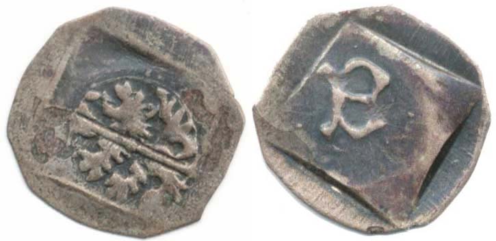 Bamberský fenik se čtyřrázm (raž. kol. r. 1453) - lev s břevnem z leva / písmeno B Rad. XV/ 5 0,36 g