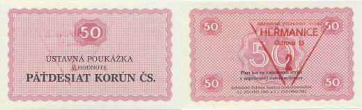 50 Korún 1981 - ústavná poukážka , razítko: Nápravně výchovný úst av Heřmanice Ostrava 13 (3řádk. nápis červ. barvy s čís. 2)