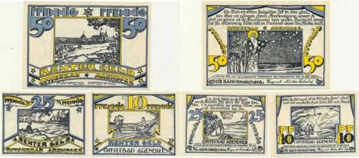 Ostseebad Arendsee - 10, 25, 50 Pfennig 1922 3 ks
