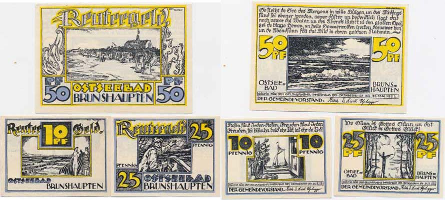 Ostseebad Brunshaupten - 10, 25, 50 Pfennig 1922 3 ks