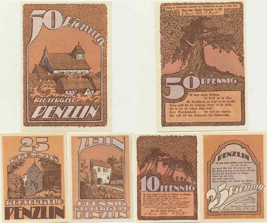 Penzlin - 10, 25, 50 Pfennig 1922 3 ks