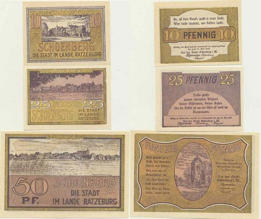 Schönberg - 10, 25, 50 Pfennig 1922 3 ks