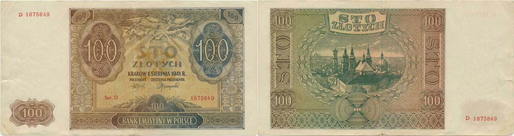 100 Zlotych 1.8. 1941 sér. D Pick 103; Miłczak 103b
