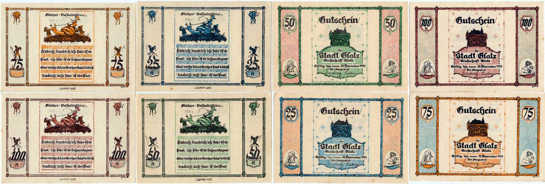 Glatz (Klodzko) - 25, 50, 75, 100 Pfennig 1921 - série "šnek" 4 ks
