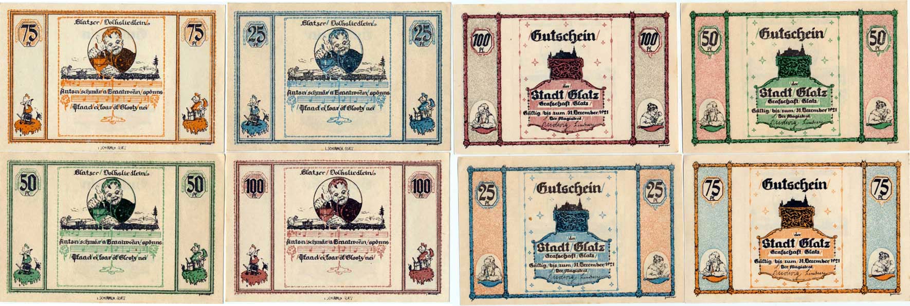 Glatz (Klodzko) - 25, 50, 75, 100 Pfennig 1921 - série "Anton" 4 ks