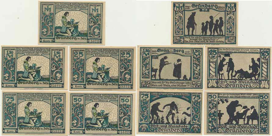 Grünberg (Zielona Góra) - 25, 50, 75 Pfennig, 1, 1,50 Mark b.l. s ér. K 5 ks