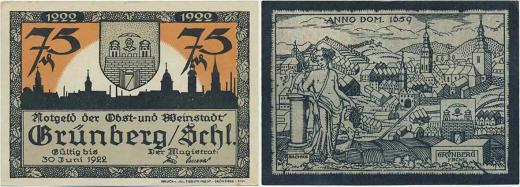 Grünberg (Zielona Góra) - 75 Pfennig 1922
