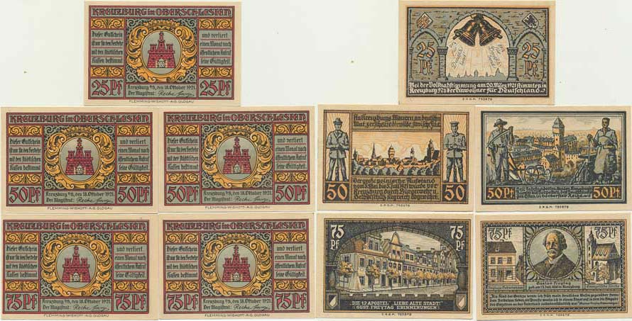 Kreuzburg (Kluczbork) - 25, 50, 50, 75, 75 Pfennig 1921 5 ks