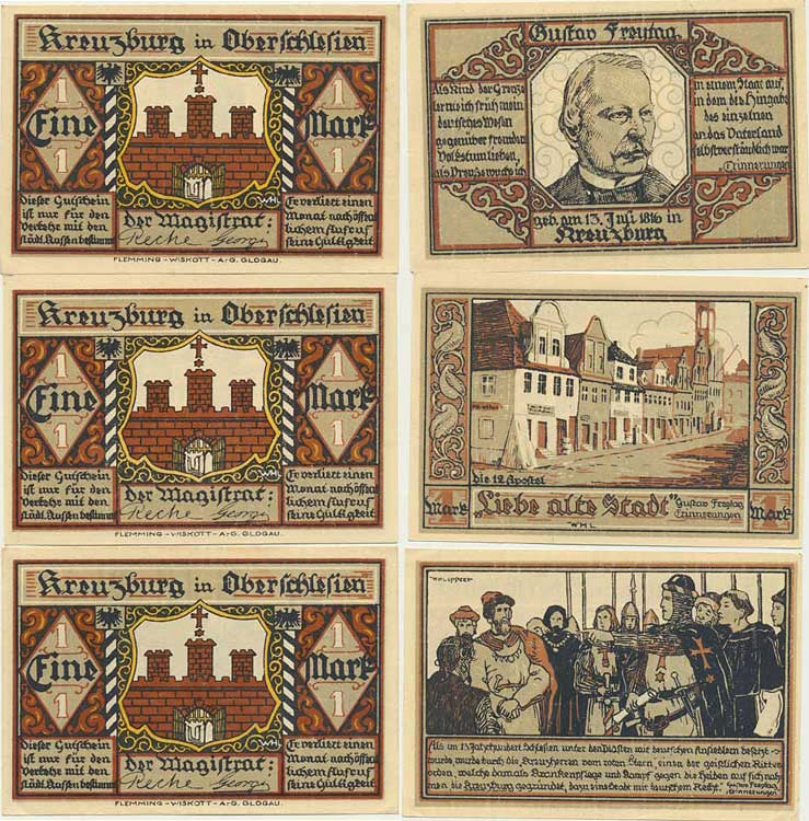 Kreuzburg (Kluczbork) - 1 Mark (3x) b.l. (1921) G.M. 744.3 kompletní řada