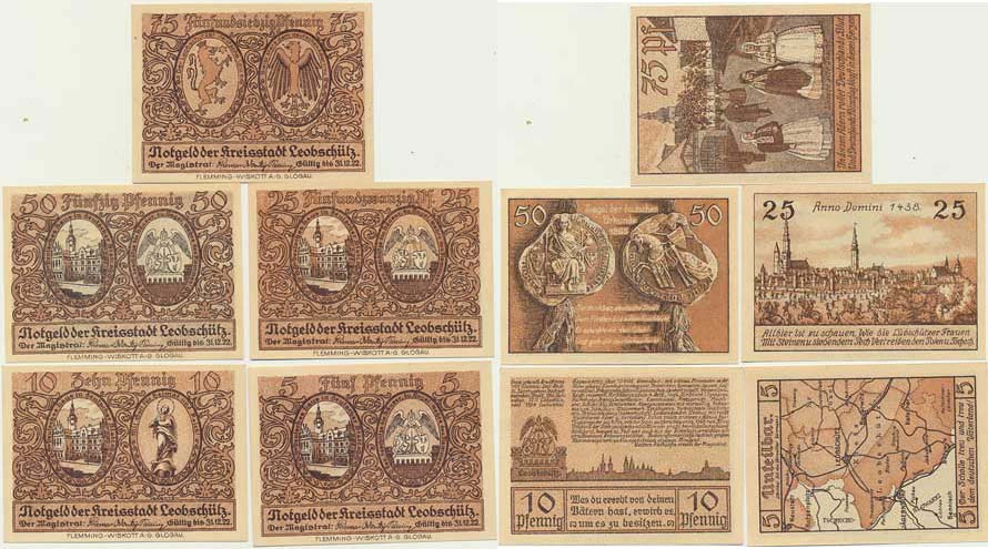 Leobschütz (Glubczyce) - 5, 10, 25, 50, 75 Pfennig 31.12.1922 5 ks