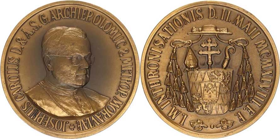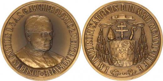 Intronizační medaile 1948, Poprsí arcibisk. vpravo, opis / Znak, opis sign.: Doležal bronz 50 mm 44,37g Taul 406