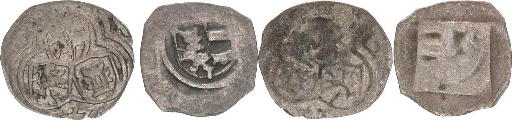 Fenik se čtyřrázem, A: Znak arcibiskupství Rad. VII / 1a var .: lev s výraznou hřívou "R" 2/ Jan Jakub Khuen - 2 fenik 1574 ŠM: 17-A-17 2 ks