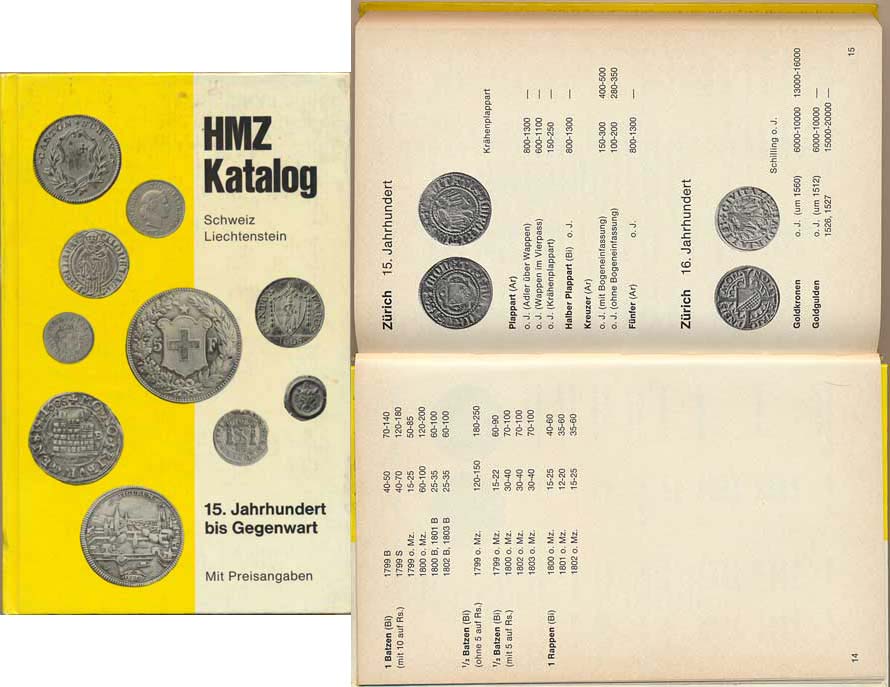 HMZ Katalog Schweiz / Liechtenstein 15. Jahrhundert bis Gegenwart vyd. 1972 239 stran (cenové informace)_tém.