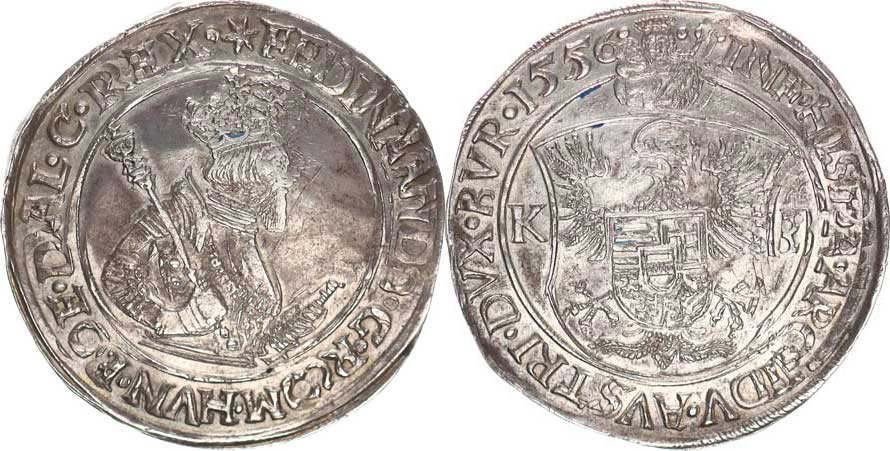 Tolar 1556 KB, Kremnica jako Hus. 914 var. tečka za REX. "RR" 28,59 g_patina