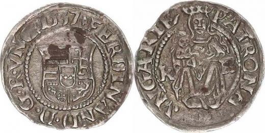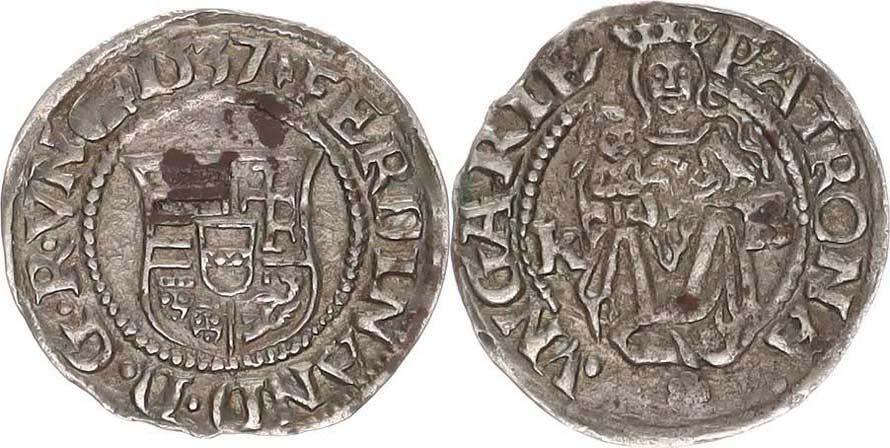 Denár 1537 K-B Husz. neuvádí - PATRONA . * . VNGARIE 0,56 g
