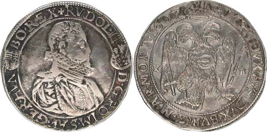 Tolar 1607 KB Husz. 1030 var.: ARCHIDVX. - bez hvězdiček p o stranách koruny 28,067 g "R"