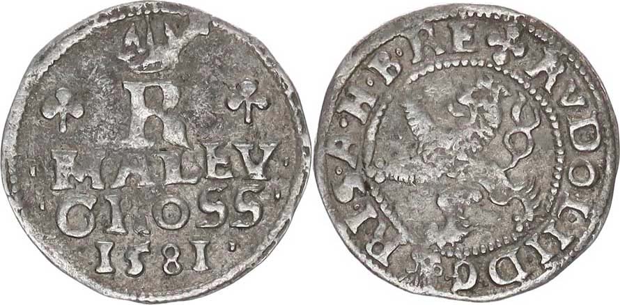 Malý groš 1581, Praha-Gebhart HN 7a minc. zn. volně, před j ménem výrazná roseta