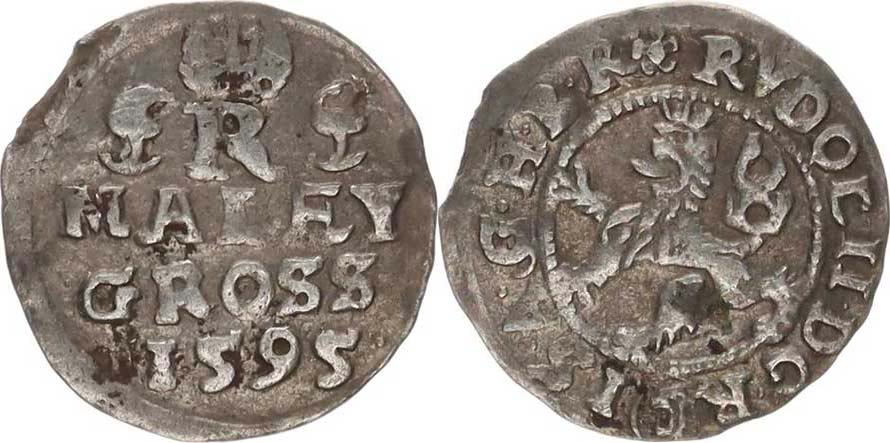 Malý groš 1595, Č.Budějovce-Mattighofer HN 28a/7a minc.zn. v pů l obloučku bez jazyka, před jménem roserta / před a za datací te čka 0,927 g