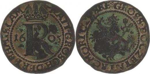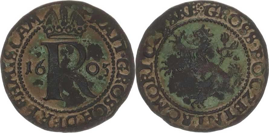 Početní groš 1605, K.Hora-Enderle HN 13a; Mrštík 69; ČS 219 _dr. krusta v rv.