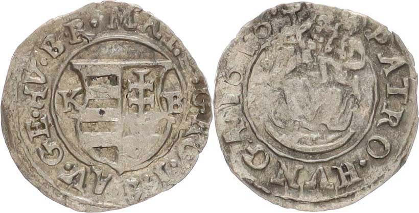 Denár 1616 K-B var.: číslice 6 markantně vzdálena od 1 0,56 g