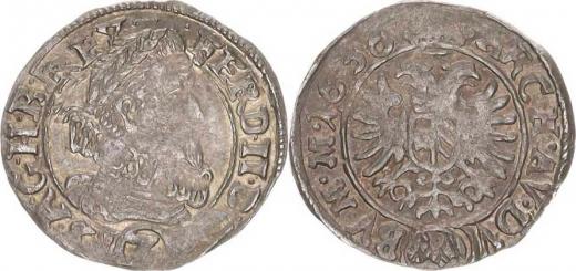 3 kr. 1636, Kutná Hora-Geronis "RR" MKČ 815 - větší hlava 1,409 g_mír. nedor.