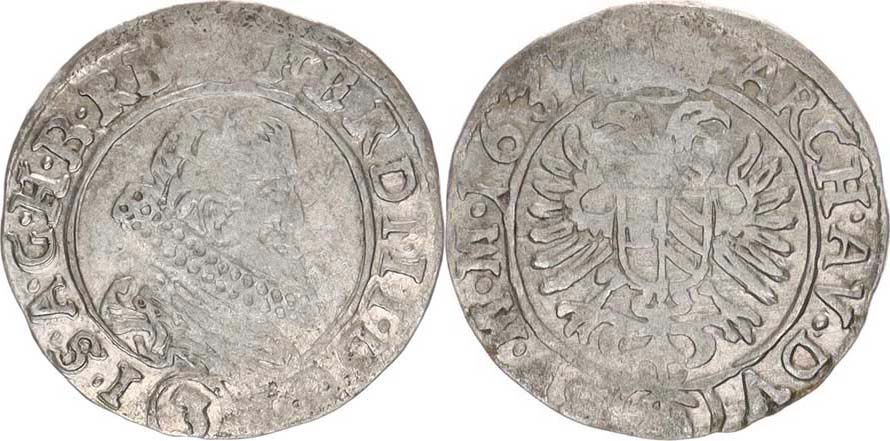 3 kr. 1637, Praha-Wolker MKČ 763 _mírně nedor., v ploše RL
