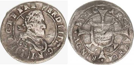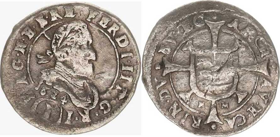 1 kr. 1624 HM, Korutany St.Veit-Matz (datace pod poprsím) var. o isu: R. I () S. A. G. H. B. RE. - hlava přerušuje vnitřní kruh 0,661 g