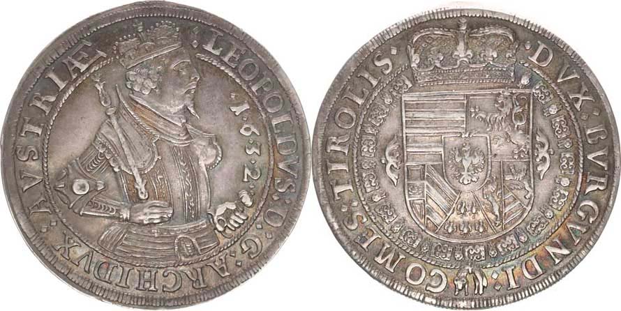 Tolar 1632, Tyroly Hall Vogulhub.183/IV var. bez tečky za AVS TRIAE / dvojtečka za BVRGVNDI : "R" 28,756 g