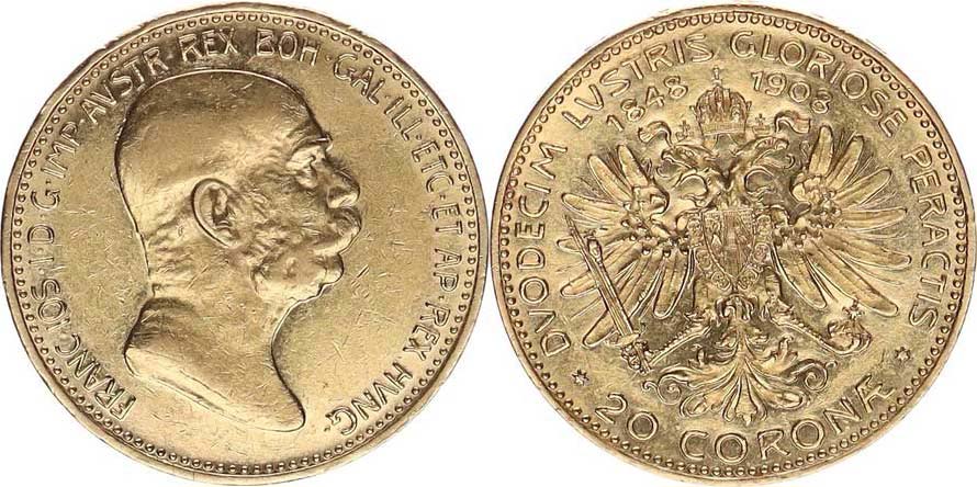 20 Koruna 1908 b.zn. - jubilejní /188.346 ks/ 6,776 g
