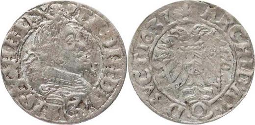 3 kr. 1637 O, Olomouc-Sonnenschein MKČ 1239 var.: D. G. - R. I. .... bez tečky za REX 1,427 g_ v ploše RL, mělká ražba