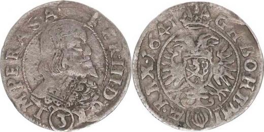 3 kr. 1641, Jáchymov-Knobloch MKČ 1219 var.: špičatá bradka, j iný typ koruny "R"