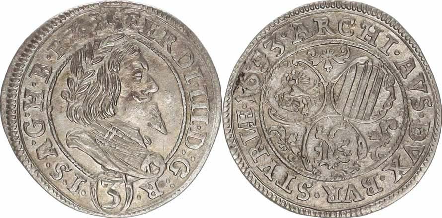 3 kr. 1653, Śtýrsko Graz var.: dataci rozděluje tečka .16 . 53.