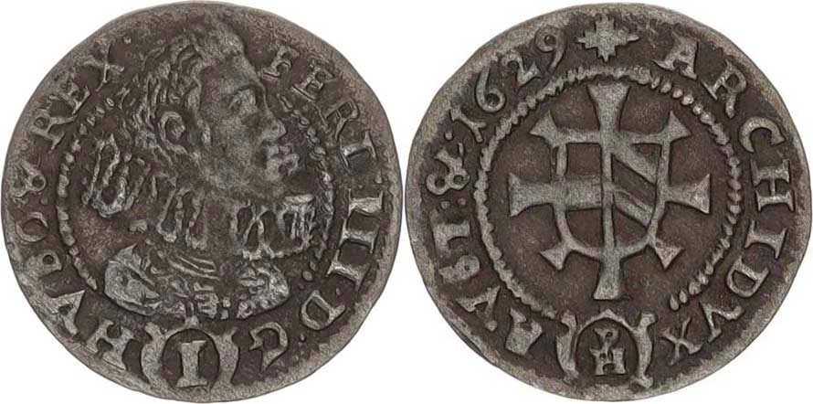 1 kr. 1629 PH, Kladsko-Hema jako MKČ 1344 ale AVST: & .1629 0,783 g