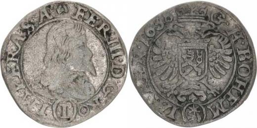 1 kr. 1638, Praha-Wolker MKČ 1183 zn. č. 1 var.: D. G. RO - "R"_mělká ražba, tém.