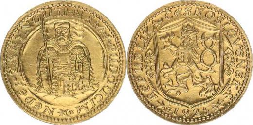 Dukát 1925 - sv. Václav /66 279 ks/ 3,445 g _zc. nep. stopa na hr. po oušku