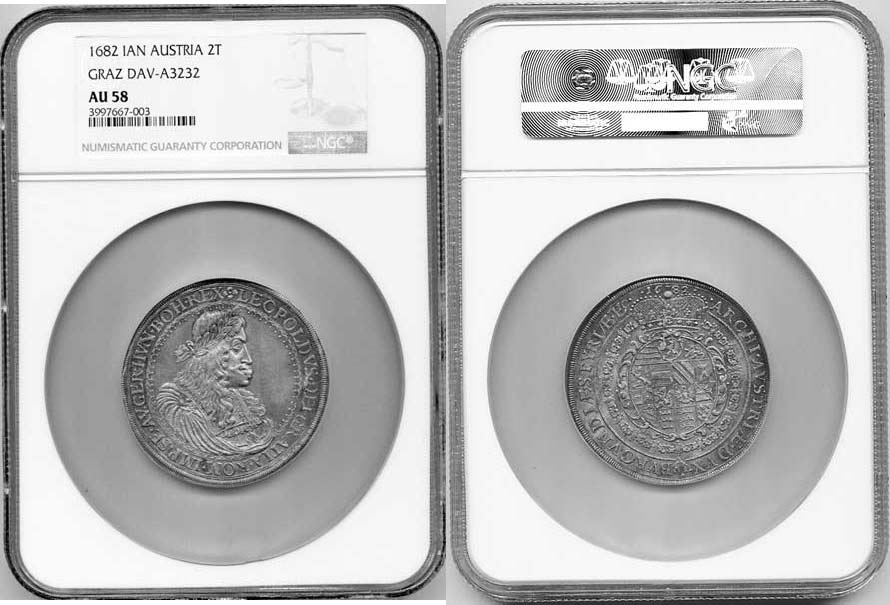 2 Tolar 1682 IA N, Štýrsko Graz-Nowak (široký 58,5 mm) "RR" grading kazeta 122,5x154 NGC - AU 58 Herinek 567; CNA 54-b-6; Davenport 292