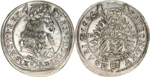 XV kr. 1686 KB opis jako Hol.86.2,2 var.: značka u čtvrtého ble sku, u vnitřního kruhu !, malá Madona Hol. neuvádí "R"
