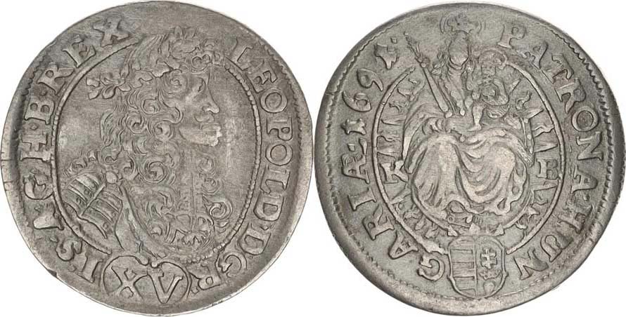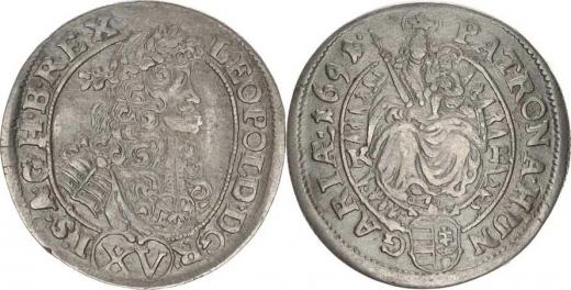 XV kr. 1691 KB Hol. 91.3,1 (přeražba z r. 1690)_tém.
