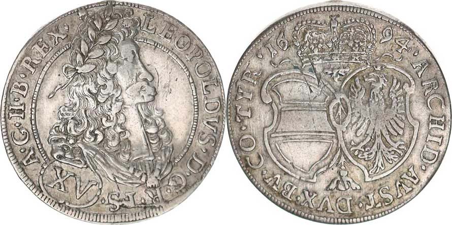 XV kr. 1694 b.zn., Tyroly, Hall Hol.94.1,4 "RR"_tém.