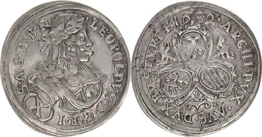 X kr. 1682 IAN, Štýrsko Graz var.: D. G. R. I. - S. A.... / AV S. DVX. BV. STYRIAE. "RR" Her. 1125v_tém.