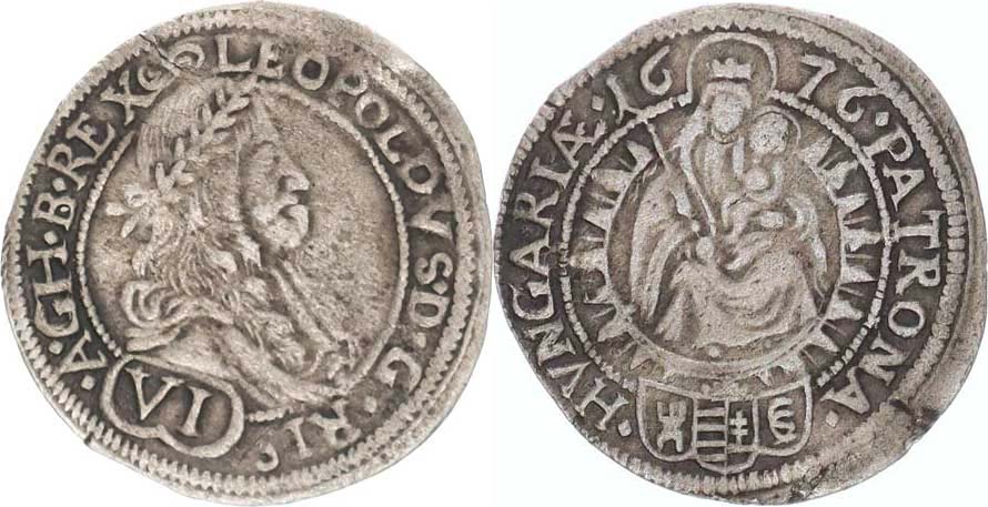 VI kr. 1676 CC, Bratislava-Cetto var.: arabeska za REX, úzká hla va Av a Rev. o 180°_nep. napr. stř.