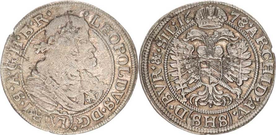 VI kr. 1678 SHS, Vratislav-Hammerschmidt MKČ -, nepublik.typ . LEOPOLDVS.DG. () R.I.S.A.G.H.B.R. / ARCHID.AV. ()D.BVR.&.SIL. 16 - 78. (bez teček mezi 6 - 7) interpunkce z kosočtvertců2,313 g_dr. hr.