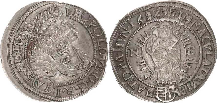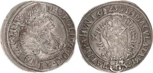 VI kr. 1692 NB - PO, Nagybánya typ S. IMMACVLATA "RR" opis: LEOPOLDVS. D.G.R.I. () S. .. / S.IMMACVLATA.VI.M. - MAT.D.P A.HVN. jako Husz. 1457; Nech.1570; Her.1264