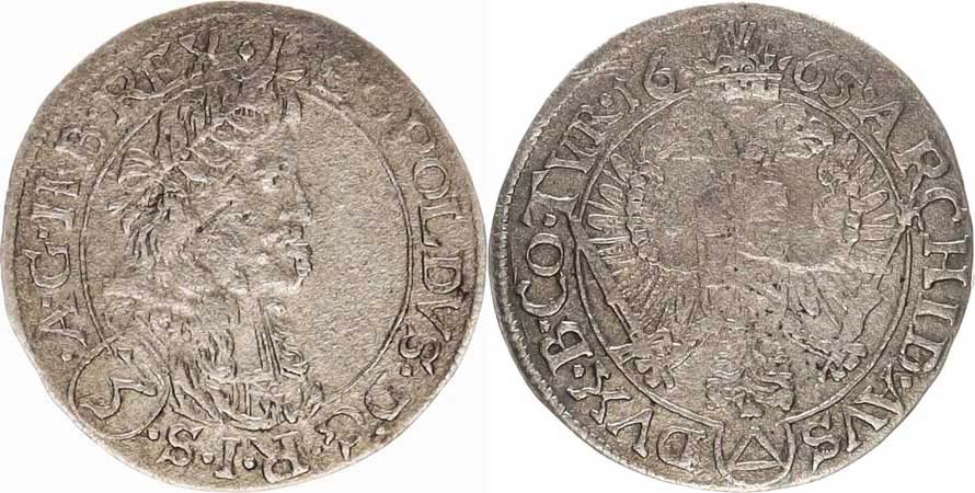 3 kr. 1665, Neuburg am Inn-Triangel "R" var.: D.G.R.I.S. () / .ARCHID. AVS () DVX. B. CO. TYR.