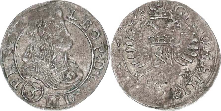 3 kr. 1678 CK, K.Hora-Krahe "R"_mír. nedor.